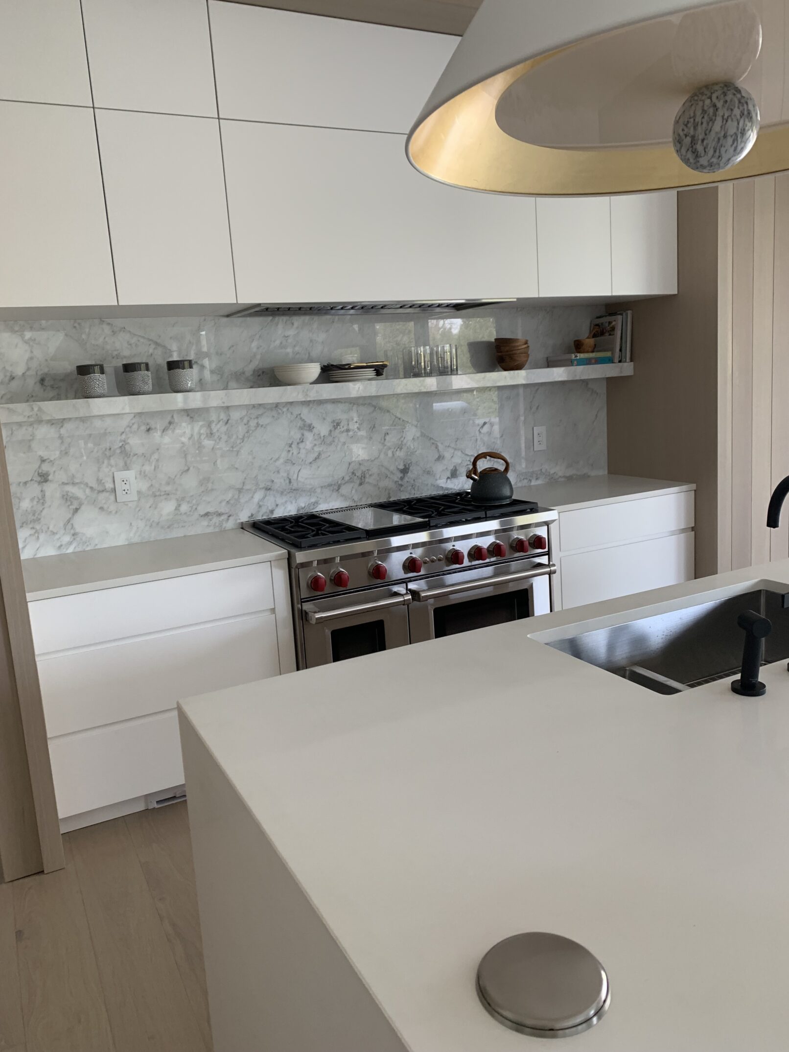 The kitchen is a living space connected to the rest of the house. Total integration of the countertop with the living room cladding or floor.